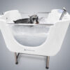 El servicio de baño para perros pequeños tiene una duración aproximada de 50 minutos e incluye lavado con cosmética natural, masaje relajante, limpieza de oídos, corte de uñas, secado, cepillado y perfume. En el caso de perros de pelo largo, se incluye también arreglo higiénico (despeje de zona íntima, almohadillas y zona de ojos).